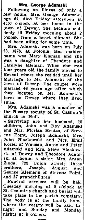 Obituary of Mary Kleman Adamski