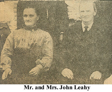 The Leahy name was brought here in 1855 by Mr. and Mrs. John Leahy, who came to